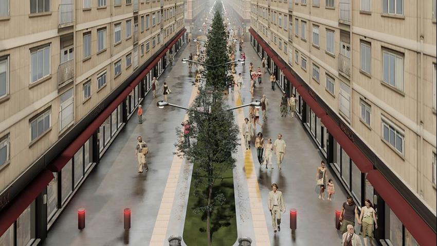 Belirli saatlerde ürün sevkiyatları için araç trafiğine açık olacak olan caddenin orta kısmında çift taraflı modern banklarla birlikte belirli aralıklarla süs havuzları, heykeller ve yeşillikler bulunacak. Cadde üzerinde ayrıca görme engellilerin kullanımı için sarı hissedilebilir yüzeyler de yer alacak.