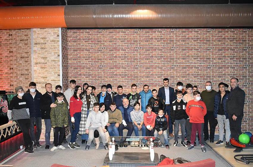 Eğitimde ilk yarıyılın cuma günü tamamlanması nedeniyle öğrencilere karne hediyesi olarak düzenlenen etkinlikte; Çelik ve öğrenciler birlikte yemek yedikten sonra, masa tenisi ve bowling oynadılar.