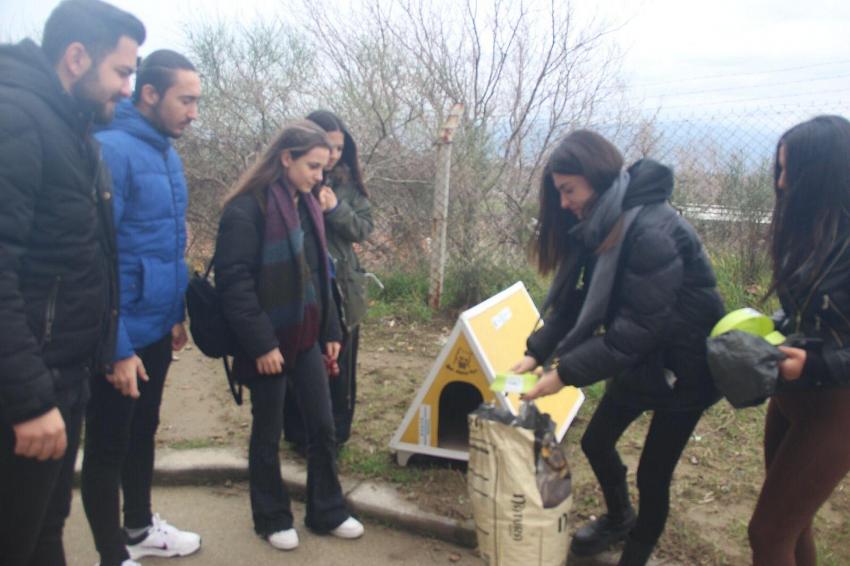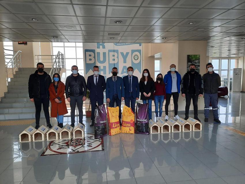 Burhaniye Belediyesi Sağlık İşleri Müdürlüğü ile ortaklaşa yürüttükleri projede BUBYO okulu ile ilçenin muhtelif yerlerine, sokakta yaşayan hayvan için kulübeler yerleştiren öğrenciler barınağa da mama desteği yaptı.