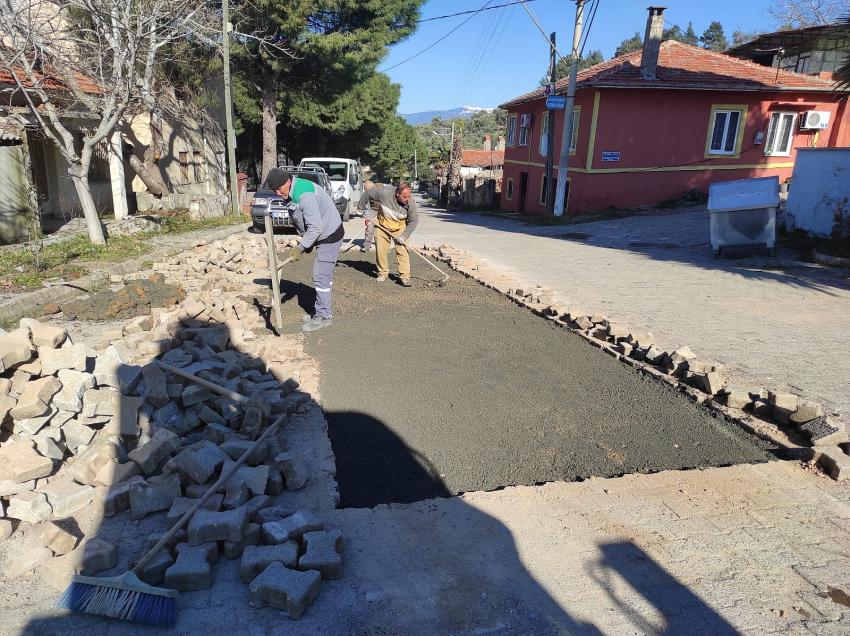 Burhaniye Pelitköy kırsalında parke taş yollar yenilenmeye başlandı.