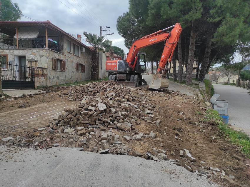 Köy girişinden başlanarak Atatürk Anıtının olduğu Meydan düzenlemesi ile birlikte tamamlanacak çalışmada yaklaşık 500 metre uzunluğunda olan yola 5 bin m2 parke taş döşeyecek olan Fen İşleri Müdürlüğü ekipleri, mahalle girişinden itibaren yol söküm işlemlerine başladı.