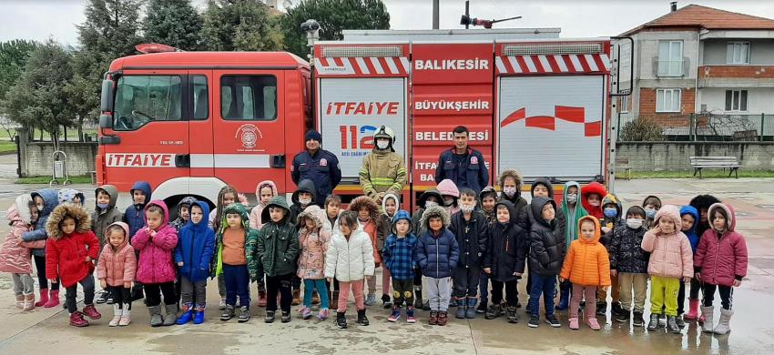 Balıkesir Büyükşehir Belediyesi İtfaiye Daire Başkanlığı, 20 ilçede, anaokulundan üniversiteye kadar onlarca okulda yangın, deprem tatbikatı gerçekleştirip yangın eğitimi de vererek öğrencileri bilinçlendiriyor.