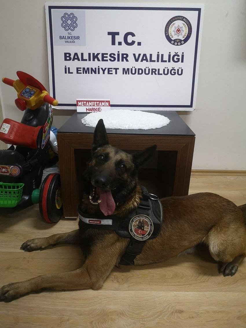 Balıkesir İl merkezinde şüphe üzerine durdurulan bir araçta yapılan aramalarda 230 gram Sentetik Kannabinoid (Bonzai) maddesi, 33.51 gram Metamfetamin maddesi ve 2 adet uyuşturucu uyarıcı madde kullanmaya yarayan cam aparat ele geçirildi, araçta bulunan 4 şahıs Uyuşturucu Veya Uyarıcı Madde İmal ve Ticareti Yapmak suçundan gözaltına alındı.
