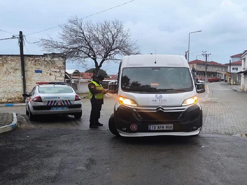 Balıkesir İl Jandarma Komutanlığı Trafik Timlerince, köy yolları ile cadde ve sokaklarda sürücüleri trafik kural, yasaklama ve kısıtlamalarına uygun şekilde araç kullanmaya yöneltmek, trafik kazalarını önlemek ve kaza sonucunda meydana gelen can ve mal kayıplarını en aza indirmek maksadıyla  "Servis Denetimi” faaliyeti gerçekleştirildi.