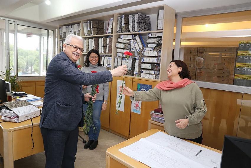 BAŞKAN DEVECİLER’DEN KADIN PERSONELE KARANFİL