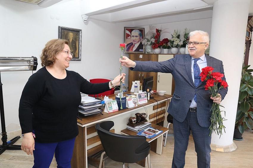 Burhaniye Belediye Başkanı Ali Kemal Deveciler 8 Mart Dünya Emekçi Kadınlar Günü dolayısıyla belediyede görev yapan kadın personelin gününü kutlayarak kırmızı karanfil dağıttı.