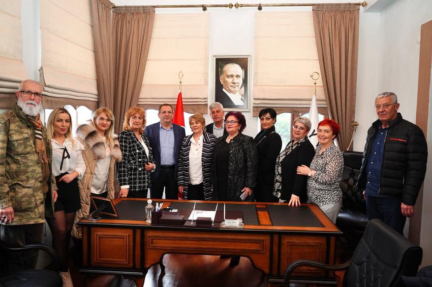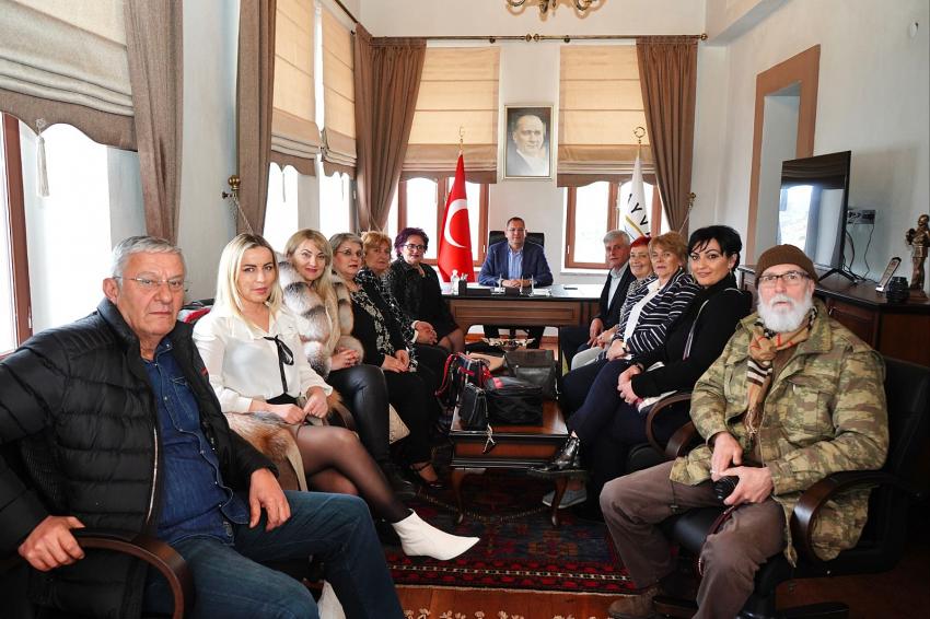 İzmir Bosna Sancak Derneği Başkanı Abdullah Gül’ün davetlisi olarak İzmir’e gelen Sırbistan Sancak Bölgesi Sjenica Kadın Derneği Başkanı Naza Cucak ve yönetim kurulu üyeleri Ayvalık Belediye Başkanı Mesut Ergin’e nezaket ziyaretinde bulundu.