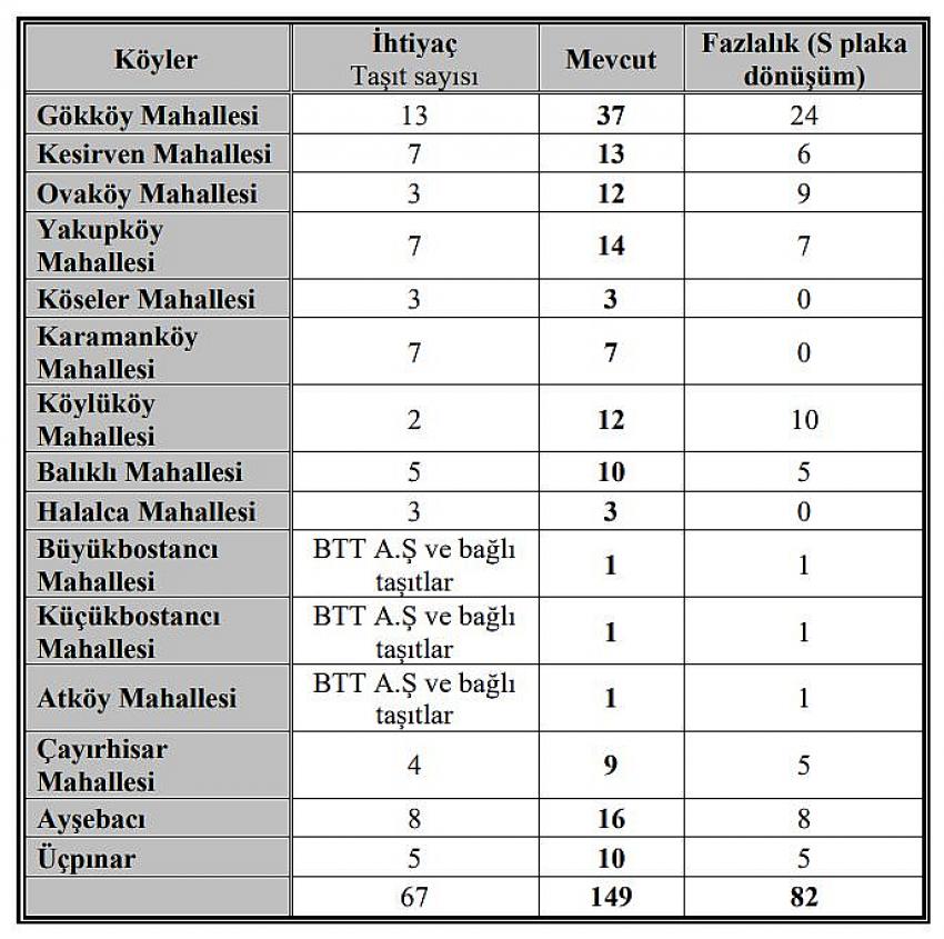 Teknik rapor bağlamında, UKOME’nin 2022-85 sayılı kararı ile 15 (on beş) kırsal mahallede taşımacılık faaliyeti yapan toplu taşıma araçlarının, yapılan yolculuk hesaplamaları sonucunda yeterli talebin olmadığı, ancak; sanayi merkezlerinde bulunan fabrika/işçi sayılarında ki artış ve öğrenci sayılarındaki artış nedeniyle, işçi/öğrenci servisine ihtiyaç olduğu için ihtiyaç fazlası 82 "M" plaka toplu taşıma aracının, "S" plaka servis taşımacılığı yaparak, Merkez ilçelerimizde ihtiyaç olan okul/işçi servisi hizmetini karşılamaları uygun bulunmuştur.
