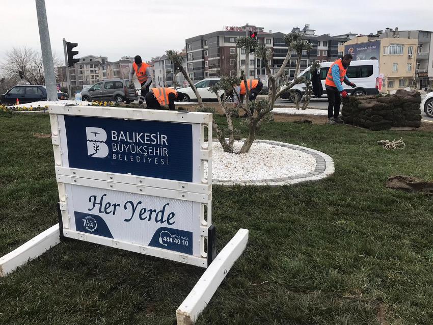 Balıkesir Büyükşehir Belediyesi, Edremit ilçe sınırlarındaki 9 kavşağı düzenlerken, 3 bin metrekare çim, 60 adet te Bonzai tipi zeytin ağacı dikimi yapıyor.