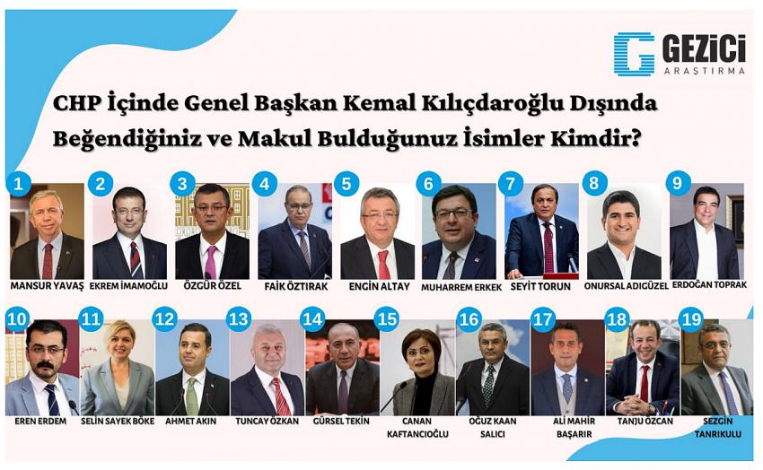 Gezici Araştırma Şirketi, 26-27-28 Şubat 2022 tarihleri arasında Türkiye genelinde sosyal, ekonomik, politik ve kültürel konular ile ilgili seçmenin algısını belirlemek üzere yaptığı araştırmada dikkat çeken sonuçlar ortaya çıktı. Siyasi partilerin genel başkanlarından sonra “beğendiğiniz ve makul bulduğunuz isim kimdir” sorusuna 60 siyasetçi arasında tek Balıkesir Milletvekili Ahmet Akın yer aldı. 22 il 75 ilçe ve 130 mahallede yer alan hanelere gidilip yüz yüze görüşme metodu ile toplandığı belirtilen araştırmada, CHP’nin MYK ve parti meclis üyeleri, büyükşehir belediye başkanları, il başkanları ve milletvekilleri arasında öne çıkan 19 isim arasında yer alan Ahmet Akın, Genel Başkan Kemal Kılıçdaroğlu’ndan sonra CHP’de “beğenilen” ve “makul” siyasetçi oldu.
