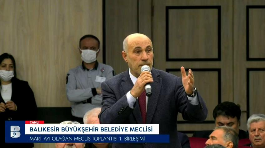 Murat Tuna, konuşmasının devamında, “Hangi boyutlarda olursanız olun, ne kadar düşünürseniz düşünün, AK Parti ve Yücel Yılmaz bu memlekete hizmetlerini, aynı Cumhurbaşkanımızın 20 yıldır yaptığı gibi gece gündüz çalışarak Balıkesir’i ihya edecektir. Meclise falan gelme niyetinde değilsiniz. Şimdi biz de önümüzdeki mecliste Başkanlık Makamına dilekçemiz ile birlikte bir önerge vereceğiz. Hasan Güçlü Sakallı ve Ayhan Halil arkadaşımızın 6’şar kere meclise gelmediler. Bu kendi belediye başkanlarının beyanıdır. Tam da bu noktada Tolga başkanın söylediği gibi hukuku uygulayacak mı? Göreceğiz” ifadelerini kullandı.
