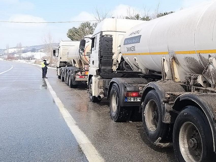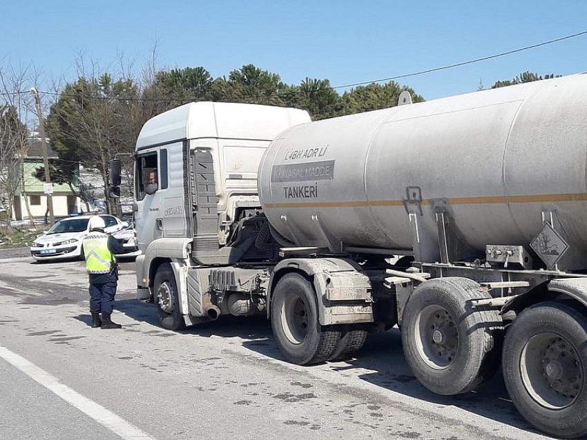 Balıkesir İl Jandarma Komutanlığı Trafik Timlerince, sorumluluk alanımızda bulunan karayollarında tehlikeli madde taşıyan araç sürücülerini trafik düzeni ve güvenliğinin sağlanmasına yönelik olarak, trafik kural, yasaklama ve kısıtlamalarına uygun şekilde araç kullanmaya yöneltmek ve kaza sonucunda meydana gelen can ve mal kayıplarını en aza indirmek maksadıyla, "Tehlikeli Madde Taşıyan Araçlara Denetim yapıldı.