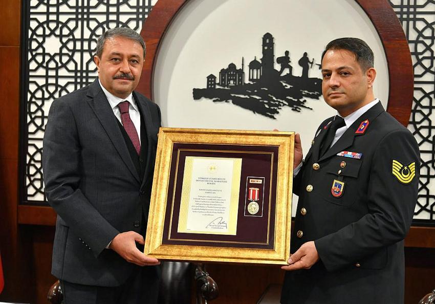 Vali Şıldak, Valilik Makamında gerçekleştirilen törende Şehit Jandarma Uzman Hasan Kuzu’nun babası Ramazan Kuzu’ya, Gazi Jandarma Astsubay Üstçavuş Emin Can’a ve Gazi Jandarma Er Yılmaz Karaman’a Devlet Övünç Madalya ve Beraatlarını tevcih etti.