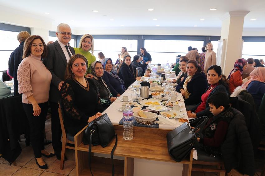 Kahvaltıya katılan kadınların tek tek kadınlar günlerini kutlayan Başkan Deveciler, katılımcılara hediyeler verdi.
