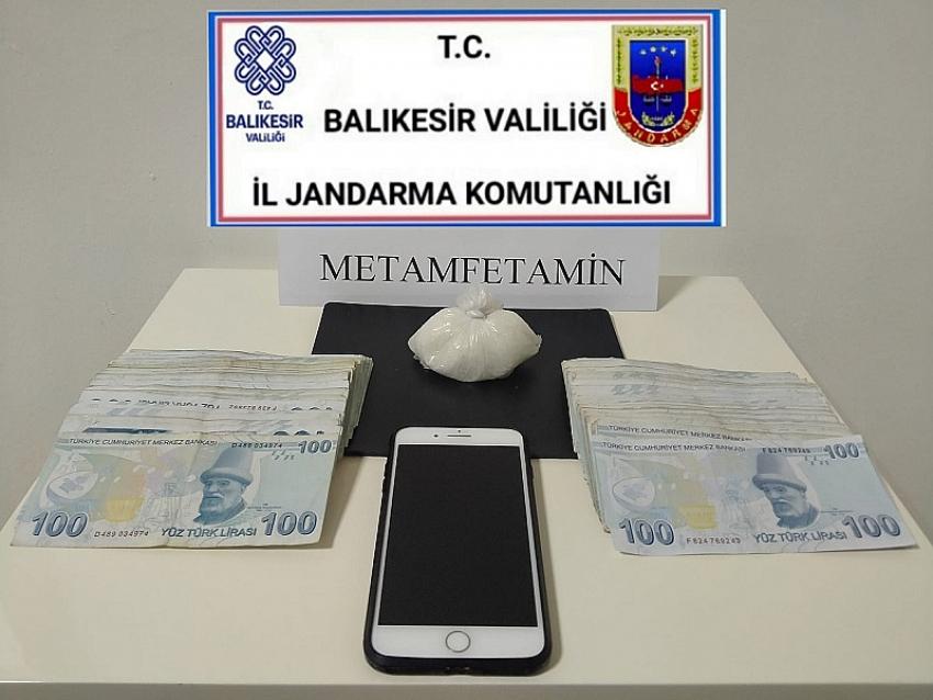 Balıkesir İl Jandarma Komutanlığınca, uyuşturucu madde imal ve ticaretine yönelik yapılan istihbari çalışmalar neticesinde, Bandırma ilçesinde uyuşturucu madde ticareti yaptığı tespit edilen (2) şüphelinin ikamet adresinde yapılan aramada; (100) gram uyuşturucu madde (metamfetamin), (1) adet cep telefonu ve suçtan elde edilen (20.000) TL ele geçirildi. Olayla ilgili (1) şüphelinin yakalandığı, (1) şüphelinin yakalama çalışmaları devam etmekte olduğu öğrenildi.