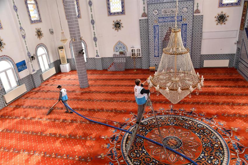 İslam âlemi için bereket ve beraberlik ayı olan Ramazan Ayı’nda, vatandaşların covid-19 salgının ardından hijyenik ve ferah bir mekanda ibadetlerini yerine getirmeleri için ekipler; camilerin iç mekânlarında bulunan halı, ayakkabılık, kapı ve duvarlarda detaylı temizlik yapıyor. Ayna ve camlar silinerek genel ve kapsamlı bir çalışma sürdürülüyor. Ayrıca cami girişleri, şadırvan, abdesthaneler ile tuvaletlerin genel temizlikleri de yapılıyor. Cami ve mescitlerdeki halılar özel buharlı yıkama tekniği ile yıkanıyor.