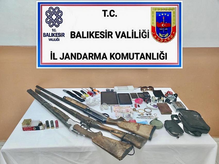 Balıkesir İl Jandarma Komutanlığınca, uyuşturucu madde imal ve ticaretine yönelik yapılan istihbari çalışmalar neticesinde, Gömeç ve Burhaniye İlçelerinde uyuşturucu madde bulundurduğu tespit edilen (5) şüphelinin ikamet adresinde yapılan aramalarda; (5) adet sentetik uyuşturucu hap, (1) gram kubar esrar, (2) gram metamfetamin, (1) adet uyuşturucu kullanma aparatı, (1) adet hassas terazi, (3) adet av tüfeği ve (29) adet fişek ele geçirildi.
