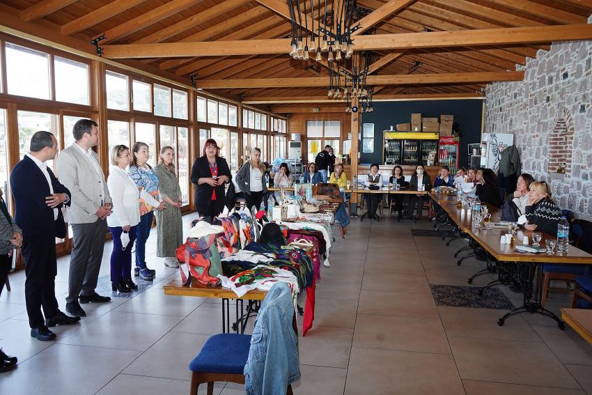 Takı tasarım, keçe, deri, ahşap boyama, sabun, örgü ile el işi tasarım ürünlerinin sergilendiği hediyelik eşyaları beğeniyle izleyen kadınlar, üretime katkı sağlayıp, aile bütçelerine destek olmak için fikir alıverişinde de bulundu. Birlikte üretim, birlikte paylaşım, birlikten güç doğar ilkesiyle hareket ederek bir araya gelen ve projeye güç katan konuklara; üretici kadınlar da, “Biz varız, güçlerimizi birleştirdik, üretmeye aile bütçesine destek vermeye hazırız” sloganıyla destek verdiler.