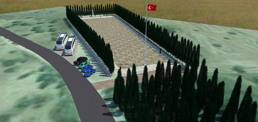 ŞEHİTLİK ANITI YAPILACAK Bilgilendirme duvarından yürüyüş yollarına, şehitlik anıtından mezar taşlarına kadar her detayın titizlikle oluşturulduğu Kanlıdere Şehitliği’nde; şehitlerimizin vatan savunması için vermiş oldukları üstün mücadele ruhu ve dik duruşları ile savaşın kazanılması, şehitlik anıtı ile sembolize edilerek kalıcı bir iz bırakacak. Şehitlerimizin, toprak üstünde betimlenmesi amacıyla simgesel mezar taşları kullanılarak şehitlerimizin kimlikleri de hazırlanacak bilgilendirme duvarında ayrı ayrı yer alacak.