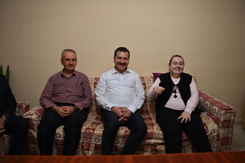 Balıkesir Büyükşehir Belediye Başkanı Yücel Yılmaz, Gönen İlçesi’nde yaşayan 23 yaşındaki kas hastası Kübra Kasap’ın evine konuk oldu. Orucunu Kübra ile birlikte açan Başkan Yılmaz, hayat dolu enerjisi ile yüzlerden tebessümü hiç düşürtmeyen Kübra’nın hayallerini gerçekleştirme sözü verdi. Akülü tekerlekli sandalye hediye ettiği Kübra’yı dinleyen Başkan Yılmaz, hayallerindeki İstanbul gezisini gerçekleştirip yürümesi için de fizik tedavi almasını sağlayacak.