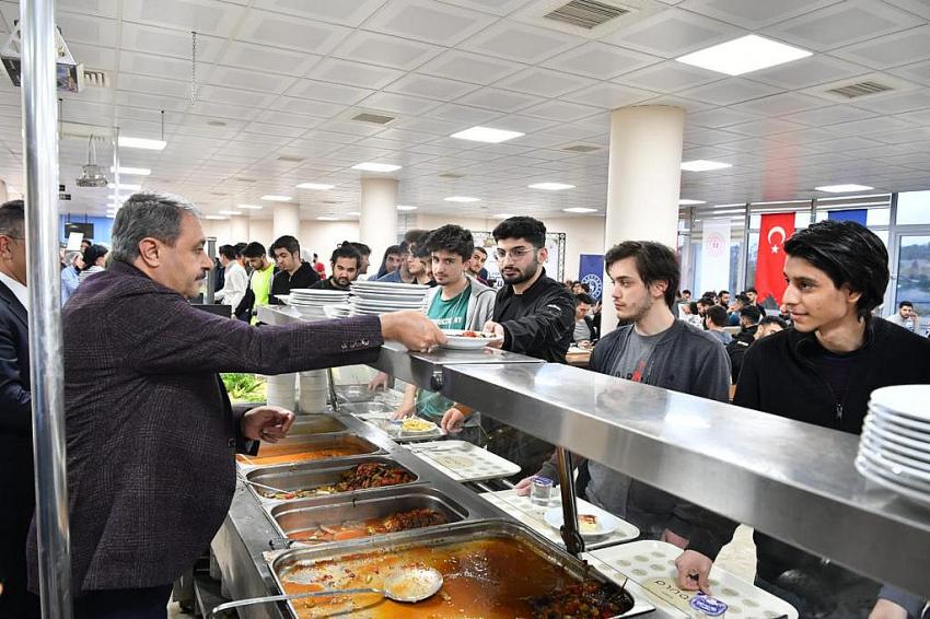 Vali Şıldak öğrencilere yemek dağıttı. Daha sonra okunan akşam ezanın ardından oruçlar açıldı.