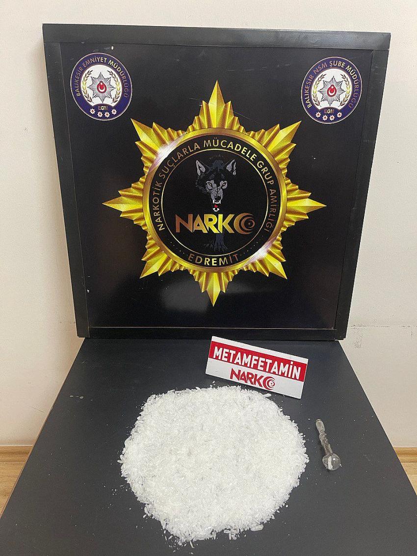 Edremit Narkotik Suçlarla Mücadele Grup Amirliği görevlilerince uyuşturucu madde imal ve ticareti yapın şahısların faaliyetlerinin engellenmesine yönelik yapılan çalışmalar neticesinde, uyuşturucu madde ticareti yapan bir şebekenin İstanbul’dan yüklü miktarda uyuşturucu maddeyi Edremit'e getirileceğinin tespiti üzerine Edremit girişinde durdurulan araç içerisinde yapılan arama ve kontrollerde 235 gr Metemfetamin ele geçirildiği, olayla (4) şüpheli şahıs yakalanarak gözaltına alındı. Gözaltına alınan şüphelerden biri olan Mehmet G. isimli şahsın Yalova Jandarma Komutanlığında görevli Astsubay olduğu, daha önceden uyuşturucu madde ticareti yaptığı için görevden uzaklaştıran kamu personeli olduğu öğrenildi. Olayla ilgili gözaltına alınan Mehmet G, Y S, R Ş. ve H K isimli (4) şüpheli şahıs sevk edildikleri adli makamlarca tutuklanarak Burhaniye Cezaevine teslim edildi.