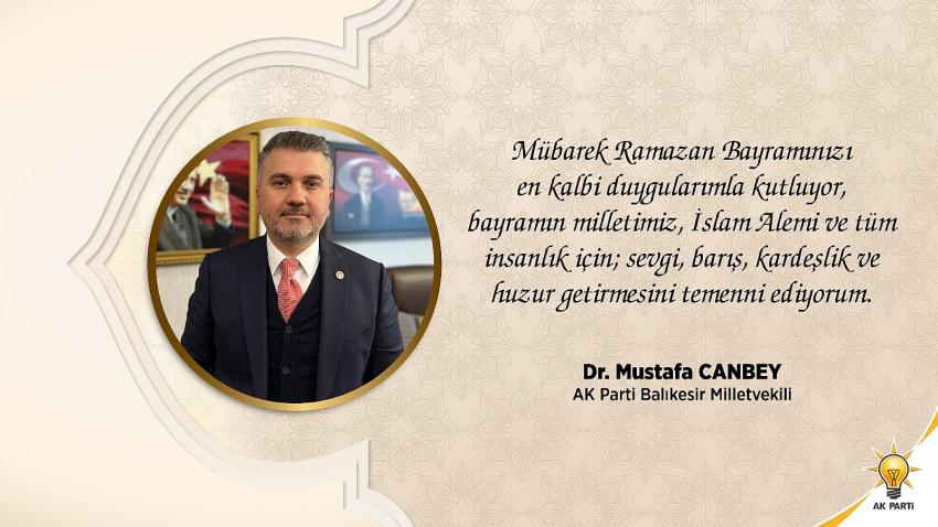 AK Parti Balıkesir Milletvekili Dr. Mustafa Canbey, Ramazan Bayramı münasebetiyle bayram mesajı yayımladı.