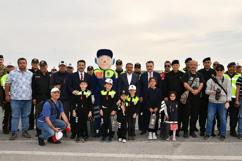 Edremit İlçesi girişinde yapılan trafik uygulamasına Vali Hasan Şıldak, İl Emniyet Müdürü Hasan Onar, İl Jandarma Komutanı J.Kd.Alb.Tarık Hekimoğlu ve Edremit Kaymakamı Ahmet Odabaş katıldı.