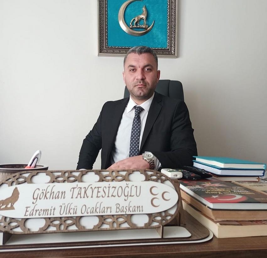 Edremit Ülkü Ocakları Başkanı Gökhan Takyesizoğlu, CHP ve HDP'nin, CHP İstanbul İl Başkanı Canan Kaftancıoğlu ile ilgili mahkeme kararını protesto için yapılan mitinge sert tepki gösterdi. Takyesizoğlu, yaptığı açıklamada şunları kaydetti: