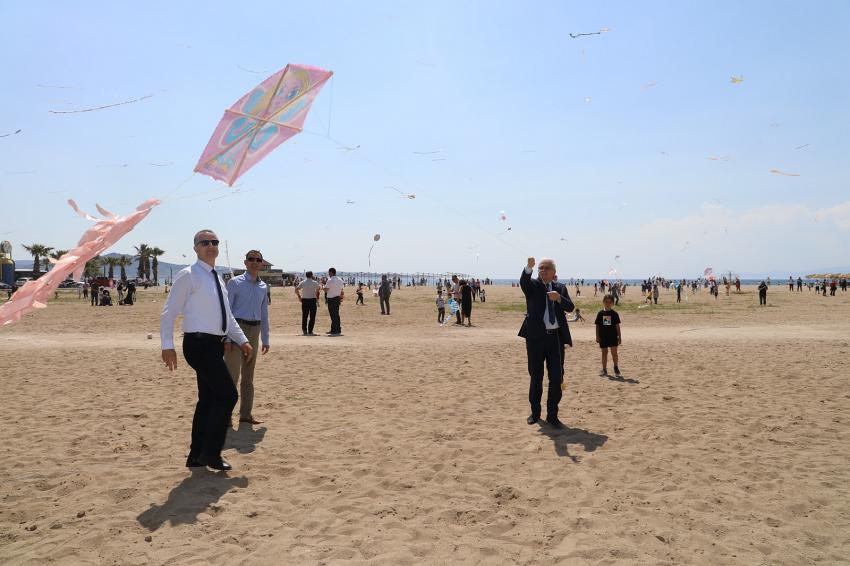 İlçe protokolü daha sonra Ören Kumsalda düzenlenen Uçurtma Şenliği’ne katılarak uçurtma uçurdu. Yaklaşık 100 uçurtmanın göklerde süzüldüğü şenlikte Belediye Başkanı Ali Kemal Deveciler’de çocuklarla birlikte uçurtma uçurdu.