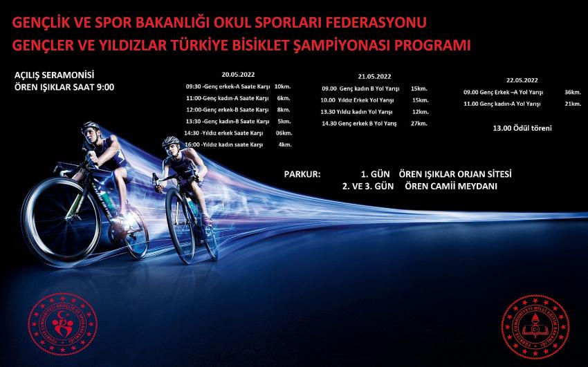 Okullar Arası Bisiklet Yıldızlar-Gençler Türkiye Birinciliği Müsabakaları 20-22 Mayıs tarihleri arasında Burhaniye’de yapılacak. 20 Mayıs Cuma günü saat 09.00’da açılış töreniyle başlayacak müsabakalar 3 gün sürecek.