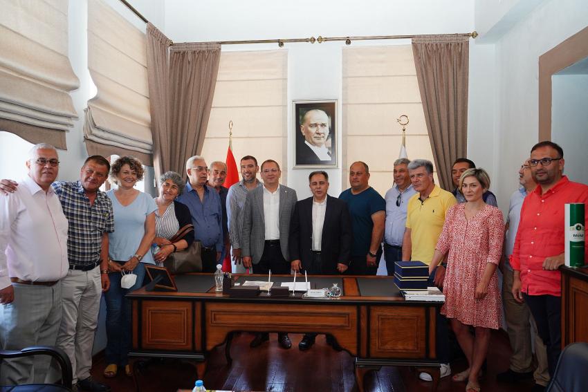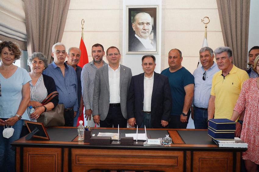 Konuk heyeti büyük bir konukseverlikle karşılayan Belediye Başkanı Mesut Ergin’e görüşme sırasında belediye meclis üyesi ve Aliağa Deniz Ticaret Odası yönetim kurulu üyesi Ali Jale ve belediye meclis üyeleri Merih Arslan ile Hüseyin Ergin de eşlik etti.