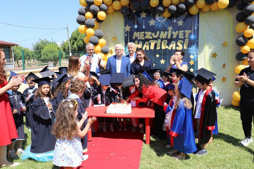 Burhaniye Belediyesi Nur Çakıroğlu Albak Çocuk Gündüz Bakımevinde eğitim alan öğrenciler ilk mezuniyet heyecanını yaşadı.
