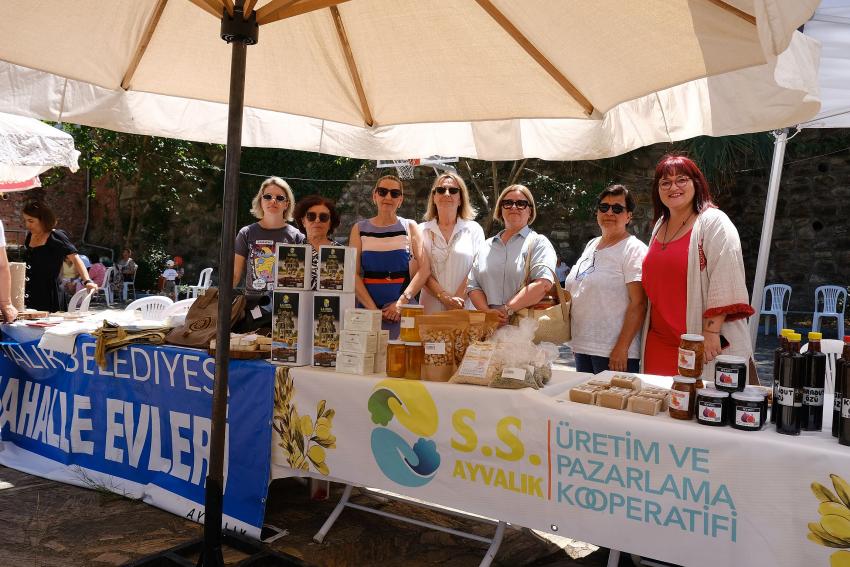 Stantları ziyaret ederek ürünler hakkında bilgi alan ve el emeği göz nuru ürünleri beğeniyle inceleyen Canan Ergin; “Ayvalık ve komşu ilçelerden gelen üretici kadınlarımız eşi benzeri olmayan birbirinden güzel el emeği ürünlerini sergiliyorlar. Kadın emeğinin güzelliği ve naifliği tasarımlarla buluşurken, hem keyifli hem verimli zaman geçiriyor, hem de kurulan stantlarda sattıkları ürünlerle aile ekonomisine katkıda bulunuyorlar” dedi.