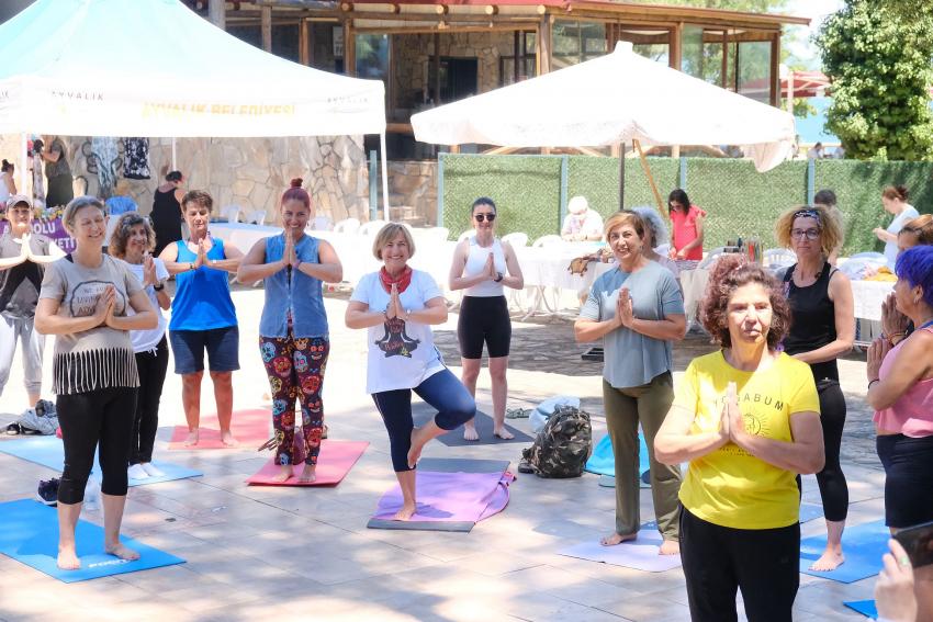 Eğitmen Gülay Puşuoğlu eşliğinde, Dünya Yoga Günü ve gün dönümü enerjilerinin aktif olduğu bir günde geniş bir katılım gerçekleştirilen etkinlik yoga yapan kadınlardan tam not aldı. Bedensel ve zihinsel sağlık için nefese dayalı egzersizleri kapsayan yogayı daha fazla kesimle buluşturmak için düzenlenen etkinliğe çok sayıda Ayvalıklı kadın ilgi gösterdi.