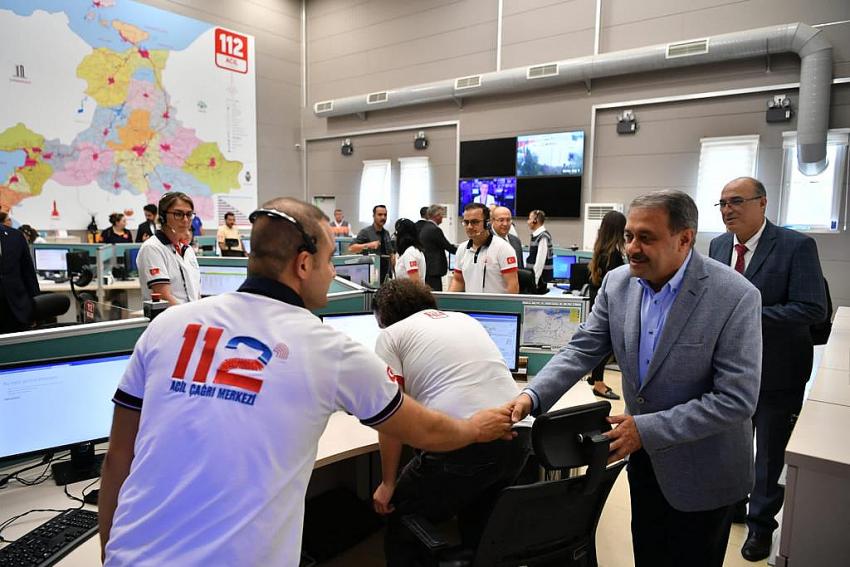 Programına 112 Acil Çağrı Merkezini ziyaretle başlayan Şıldak, vatandaşın huzuru ve sağlığı için mesai gözetmeksizin çalışan personelin bayramını kutlayarak, özverili çalışmaları için teşekkür etti.