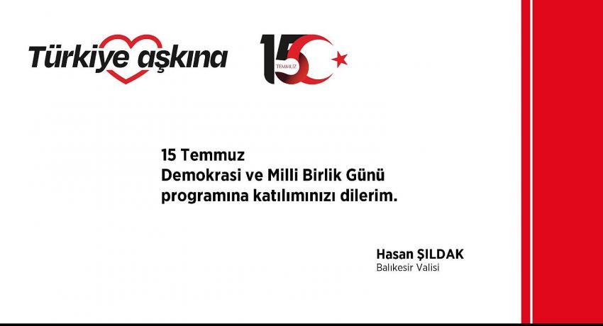 Vali Şıldak sosyal medya hesaplarından yaptığı paylaşımla vatandaşları birlik ve beraberliğin vücut bulacağı Demokrasi Nöbetine davet etti. Balıkesirlilerin Valilik Binası yanında bulunan Milli İdare Meydanını doldurarak coşkuya ortak olması çağrısında bulundu.
