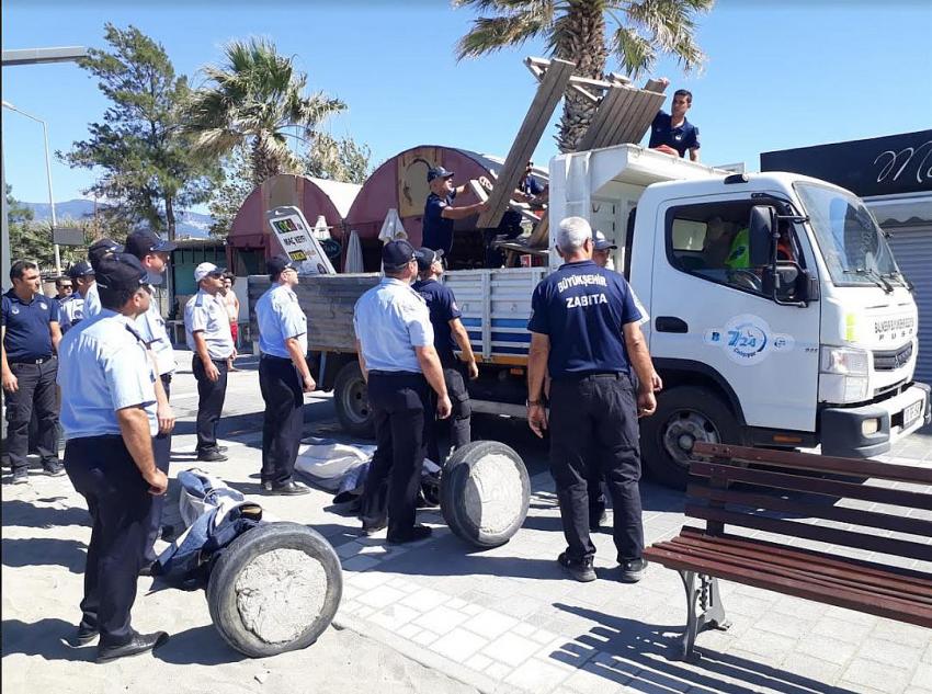 Balıkesir Büyükşehir Belediyesi Zabıta ekipleri, Edremit İlçesi Altınkum Plajı’nda usulsüz işgallere son verdi. Usulsüz işgallerin kaldırılması tatilciler tarafından takdirle karşılandı.