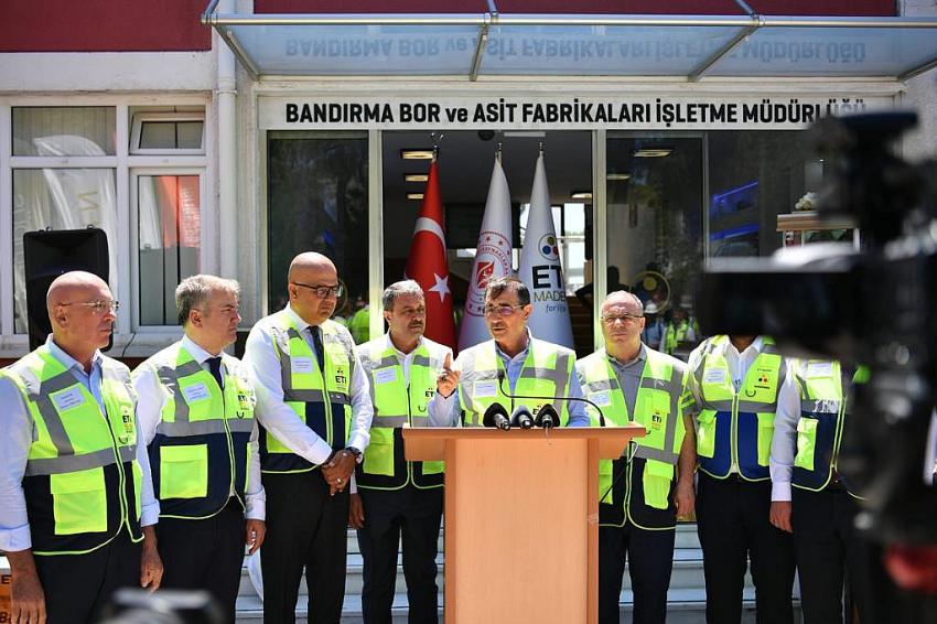 ETİ Maden işletmesinin Bandırma’daki işletme tesislerinde devam eden yatırımları yerinde inceleyen Enerji ve Tabii Kaynaklar Bakanı Fatih Dönmez, "Son yıllardaki stratejimiz maden ürünlerini, hammaddeyi ara ve uç ürüne dönüştürmek suretiyle; başka bir ifadeyle katma değerli ürünlere dönüştürmek suretiyle yurt içi ya da yurt dışı piyasalara arzını önemsiyoruz." ifadelerini kullandı.