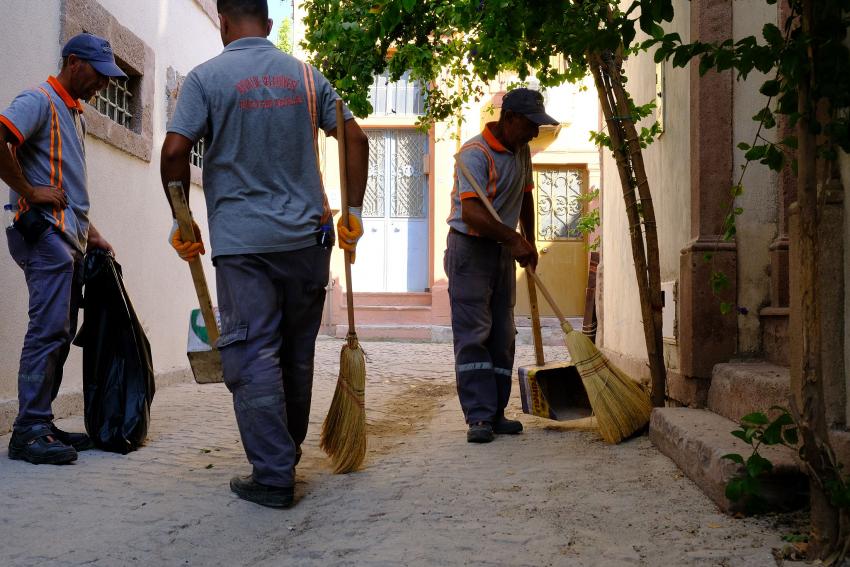 Ayvalık Belediyesi Temizlik İşleri Müdürlüğü ekipleri temiz kent sokakları için seferber oldu, gece gündüz çalışıyor. Ayvalık merkezdeki tarihte bir yolculukmuşçasına, denize çıkan ünlü kent sokaklarında devam eden çalışmalarda dip bucak temizlik seferberliği gerçekleştirildi.