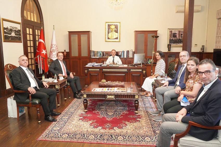 Ayvalık Belediye Başkanı Mesut Ergin, Kültür ve Turizm Bakanlığı Müzeler Genel Müdürü Gökhan Yazgı'yı, Ayvalık UNESCO Dünya Mirası ve Alan Yönetimi Birimi Koordinatörü Yaşagül Ekinci Danışan ve belediye UNESCO ekibiyle birlikte makamında ziyaret etti.