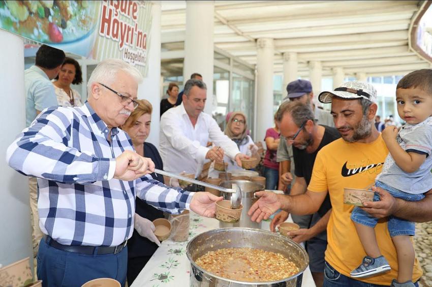 Burhaniye Belediye Başkanı Ali Kemal Deveciler’le birlikte Başkan Yardımcısı Murat Yazgan ve Belediye meclis üyelerinin öncülüğünde 4 bin kase aşure dağıtımı yapıldı. Hayırda konuşan Belediye Başkanı Ali Kemal Deveciler “Burhaniye Belediyesi olarak Birlik, beraberlik duygularını yoğun olarak yaşadığımız bu ayda aşure hayrımızı yapmanın mutluluğunu yaşıyoruz” dedi.