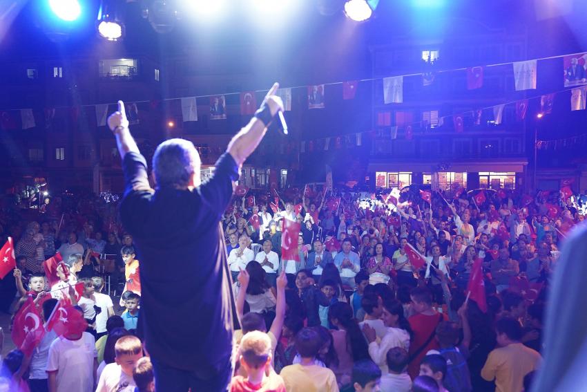 Cumhuriyet Meydanı'na kurulan sahnede yüzlerce kişi bir araya geldi. Ünlü sanatçı Soner Olgun’un yaklaşık iki saatten fazla sahnede kaldığı konserde yaşlısından gencine, çocuklardan yetişkinlere herkes hep birlikte müziğin ritmine eşlik etti.