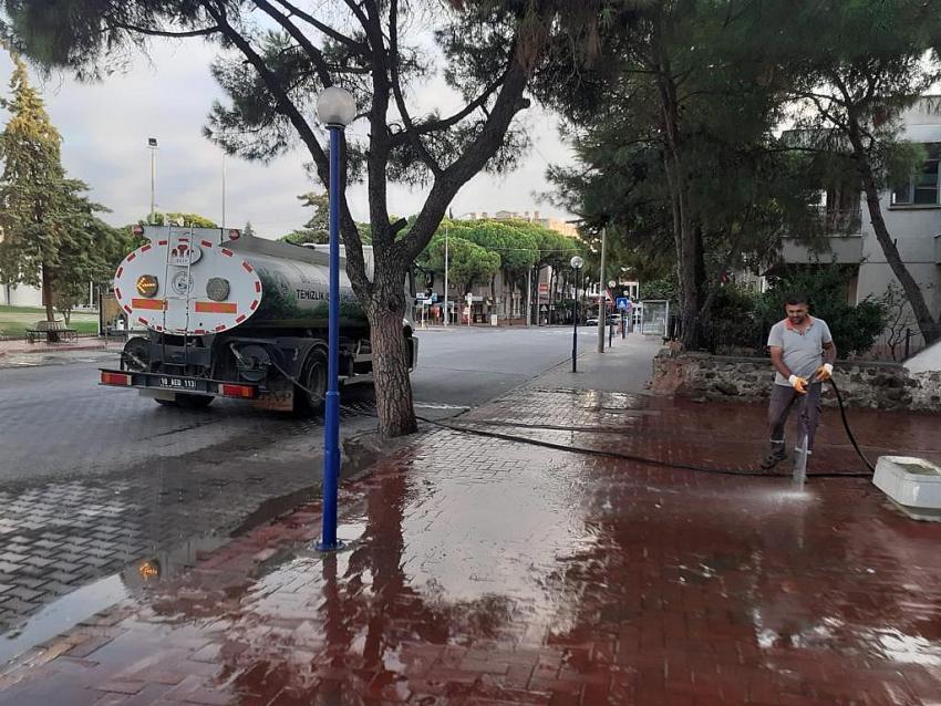Burhaniye Belediyesi ilçede yaptığı rutin temizlik çalışmalarının yanı sıra periyodik olarak cadde ve sokakları da tazyikli su ile yıkama çalışmalarına devam ediyor.