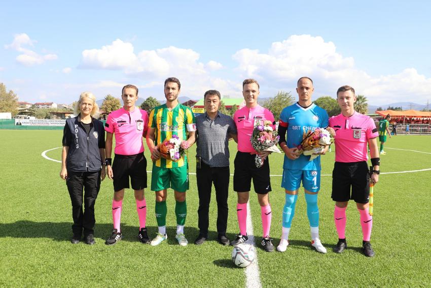 İlçe Emniyet Müdürü Metin Kartal maçın hakemine ve takım kaptanlarına maç öncesi seremonide çiçek verirken maçı Belediye Başkanı Ali Kemal DEVECİLER, Belediye Başkan Yardımcısı Oktay ERBALABAN, Belediye Meclis Üyeleri ve Burhaniyeli sporseverler ile izledi.