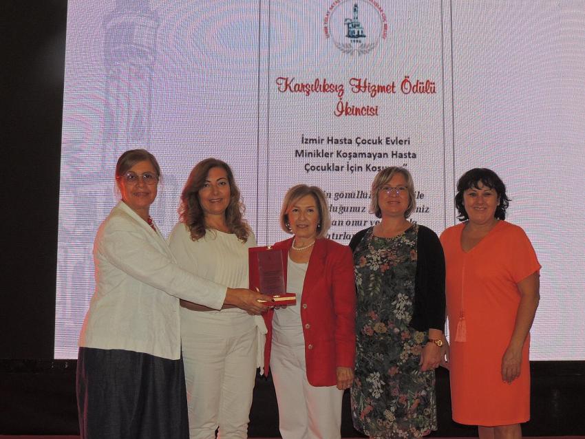 İzmir Hasta Çocuk Evleri Derneği’nin “Minikler Koşamayan Hasta Çocuklar İçin Koşuyor” projesi Tarihi Havagazı Fabrikası’nda üyesi olduğu Tülay Aktaş Gönüllü Kuruluşlar Güçbirliği Platformu’nun 4 Ekimde düzenlediği “Karşılıksız Hizmet Ödülü” toplantısında ikinciliğe değer görüldü.