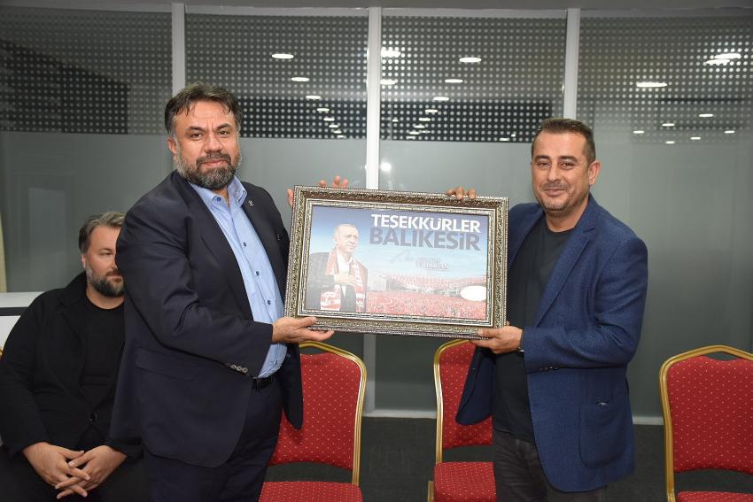 Cumhurbaşkanı Recep Tayyip Erdoğan imzalı “Teşekkürler Balıkesir” tablosunu Havran ve Edremit İlçe Başkanlarına hediye eden AK Parti İl Başkanı Dt. Ekrem Başaran, Cumhurbaşkanının duyduğu memnuniyeti ve teşekkürünü de İlçe Teşkilatlarına iletti. İl Başkanı Dt. Ekrem Başaran konuşmasında, “Liderimiz, Genel Başkanımız ve Cumhurbaşkanımız Sayın Recep Tayyip Erdoğan’ın taktirine, övgüsüne, teşekkürüne mazhar olmak bizler için büyük bir gurur ve onur kaynağıdır. Bunu AK Teşkilatlar olarak birlikte başardık. Miting öncesi hazırlık çalışmasında gösterdiğiniz gayretten dolayı; gerek İl Yönetim Kurulu Üyelerimize, gerek Büyükşehir Belediye Başkanımıza ve İlçe Belediye Başkanlarımıza, gerekse siz kıymetli İlçe Başkanlarımıza, Kadın Kollarımıza ve Gençlik Kollarımıza ayrı ayrı teşekkür ediyorum. İyi ki varsınız. İşte AK Teşkilat bu.