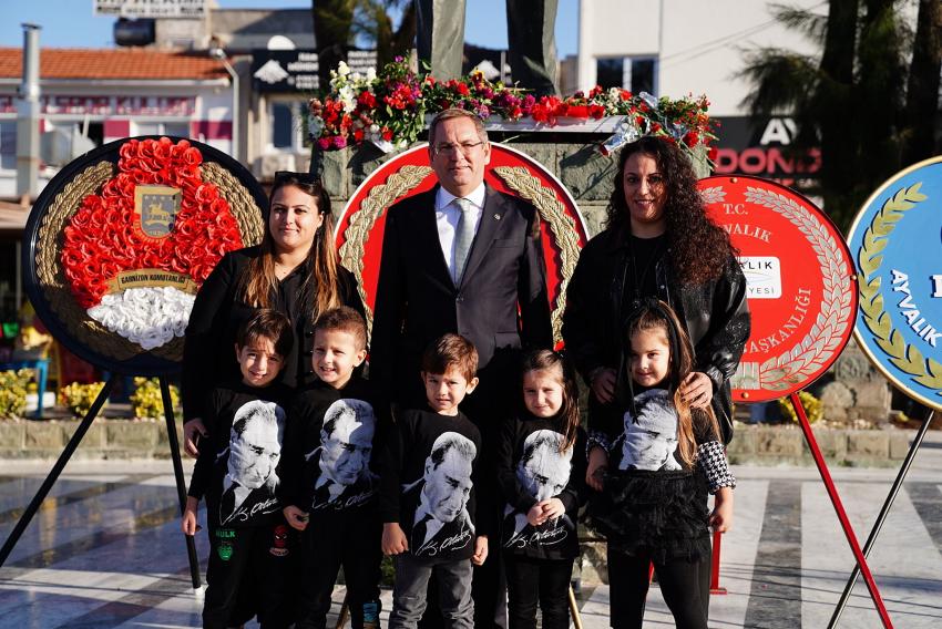 Cumhuriyet Meydanı'nda Atatürk anıtı önünde çelenk sunma töreniyle başlayan anma programında; Ayvalık Kaymakamı Hasan Yaman, Garnizon Komutanı Albay Ertan Tutar, Ayvalık Belediye Başkanı Mesut Ergin, Cumhuriyet Başsavcısı Muhammed Furkan Demirbaş, daire amirleri, gaziler, şehit yakınları, siyasi partiler ve sivil toplum kuruluşlarının temsilcilerin yanı sıra kalabalık bir vatandaş topluluğu hazır bulundu.