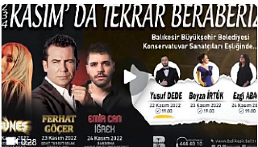 Balıkesir Büyükşehir Belediyesi Konservatuvar Sanatçısı Yusuf Dede’nin ve ardından Güneş’in birbirinden güzel şarkılarını dinleyeceğimiz eğlence dolu Sonbahar Gençlik Konserinde görüşmek üzere...