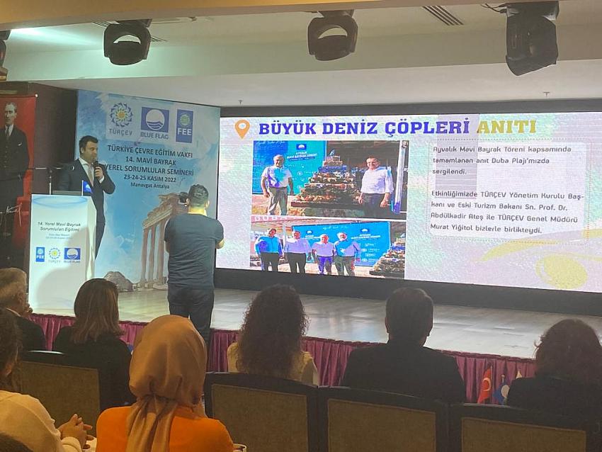 Etkinlikte Ayvalık Belediyesi tarafından 2022 yılı yaz sezonunda yapılan farkındalık etkinlikleri örnek gösterildi. Seminerin ikinci gününde Ayvalık Belediyesi Yerel Mavi Bayrak Sorumlusu Lütfü Kotan tarafından, Büyük Deniz Çöpleri Anıtı ve İzmaritsiz Ayvalık farkındalık çalışmaları ve Uluslararası Karikatür Yarışması katılımcılara anlatıldı.